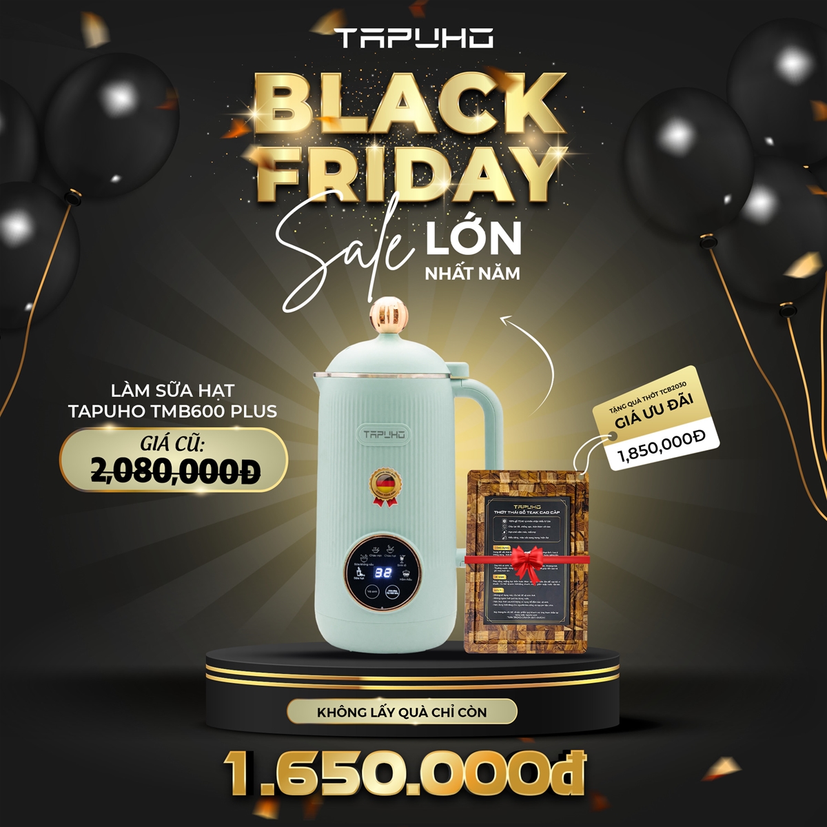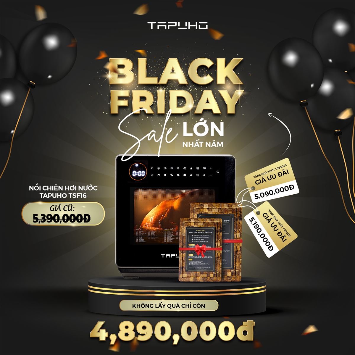 Cùng hoà nhịp Ngày hội mua sắm Black Friday 2023, Tapuho xin trân trọng gửi đến quý khách hàng chương trình khuyến mãi, giảm giá vô cùng hấp dẫn. Quý khách hàng sẽ có cơ hội sở hữu những thiết bị gia dụng thông minh với mức giá ưu đãi nhất.