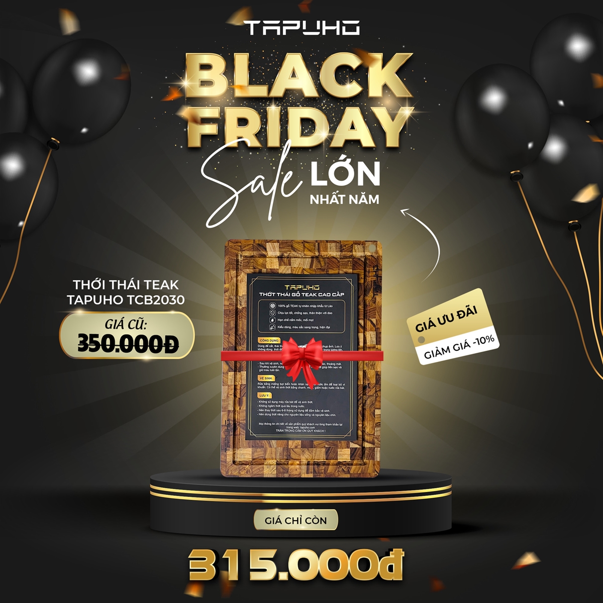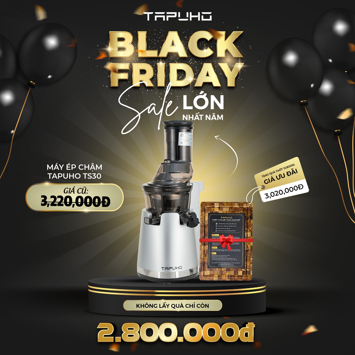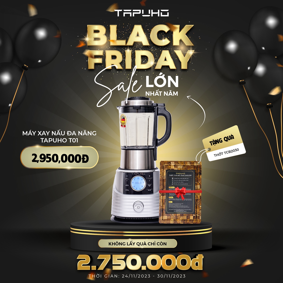 Chào đón chương trình siêu sale lớn nhất năm, Tapuho gửi đến cho các bạn chương trình Black Friday với nhiều ưu đãi cực kỳ hấp dẫn. Thời gian khuyến mại bắt đầu từ ngày 24/11 – 30/11.