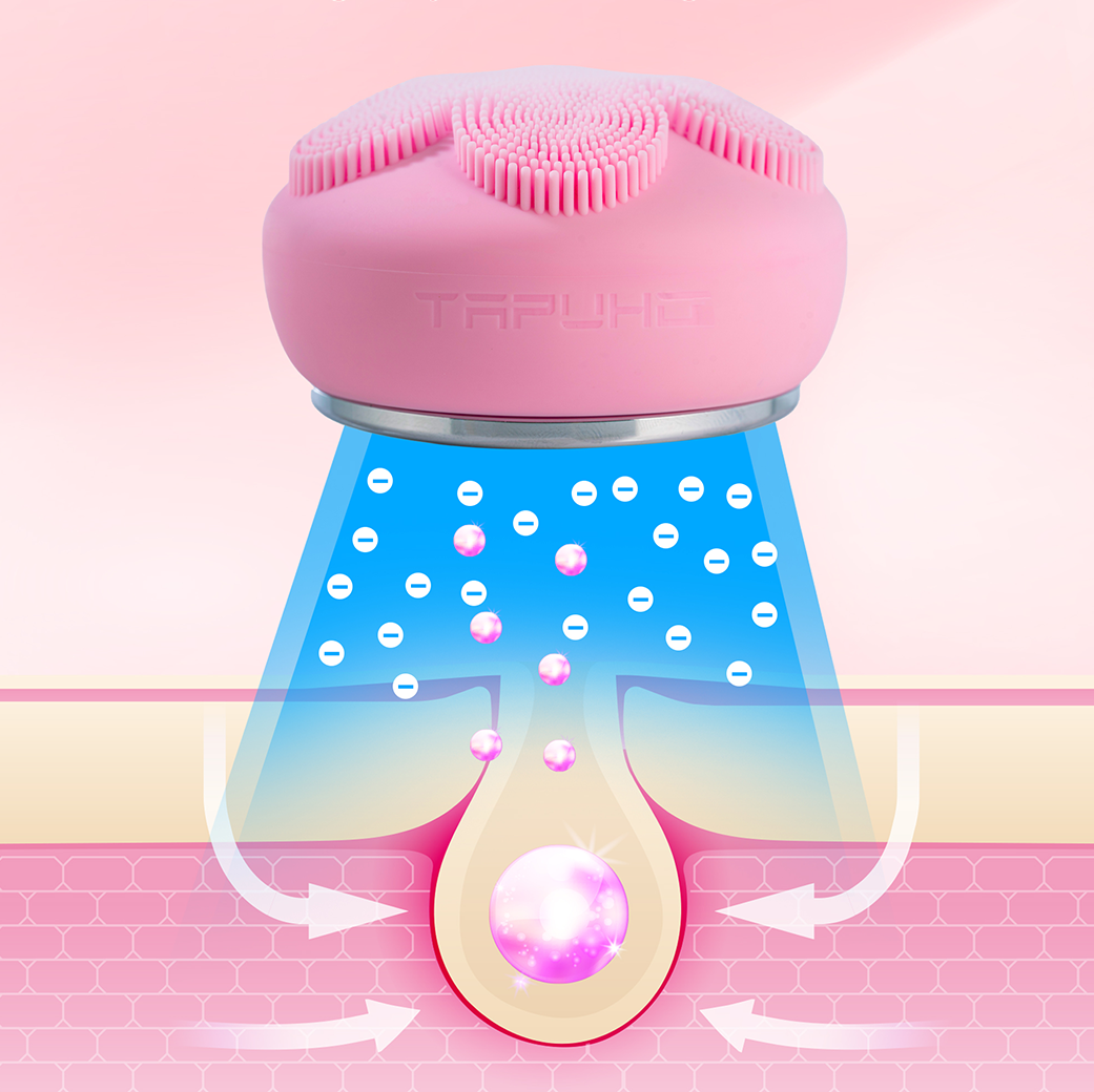 Dưới lớp Silicone của máy có 5 hạt từ tính 3D chuyển động quay nhẹ nhàng có chức năng massage và cải thiện độ đàn hồi rất tốt cho da. Từ đó giúp hỗ trợ điều trị các vấn đề da lão hóa, ngăn chặn tình trạng da bị chảy xệ hay hình thành nếp nhăn.