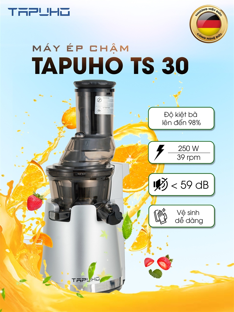 Máy ép chậm Tapuho thương hiệu Đức bền bỉ với giá thành cạnh tranh.