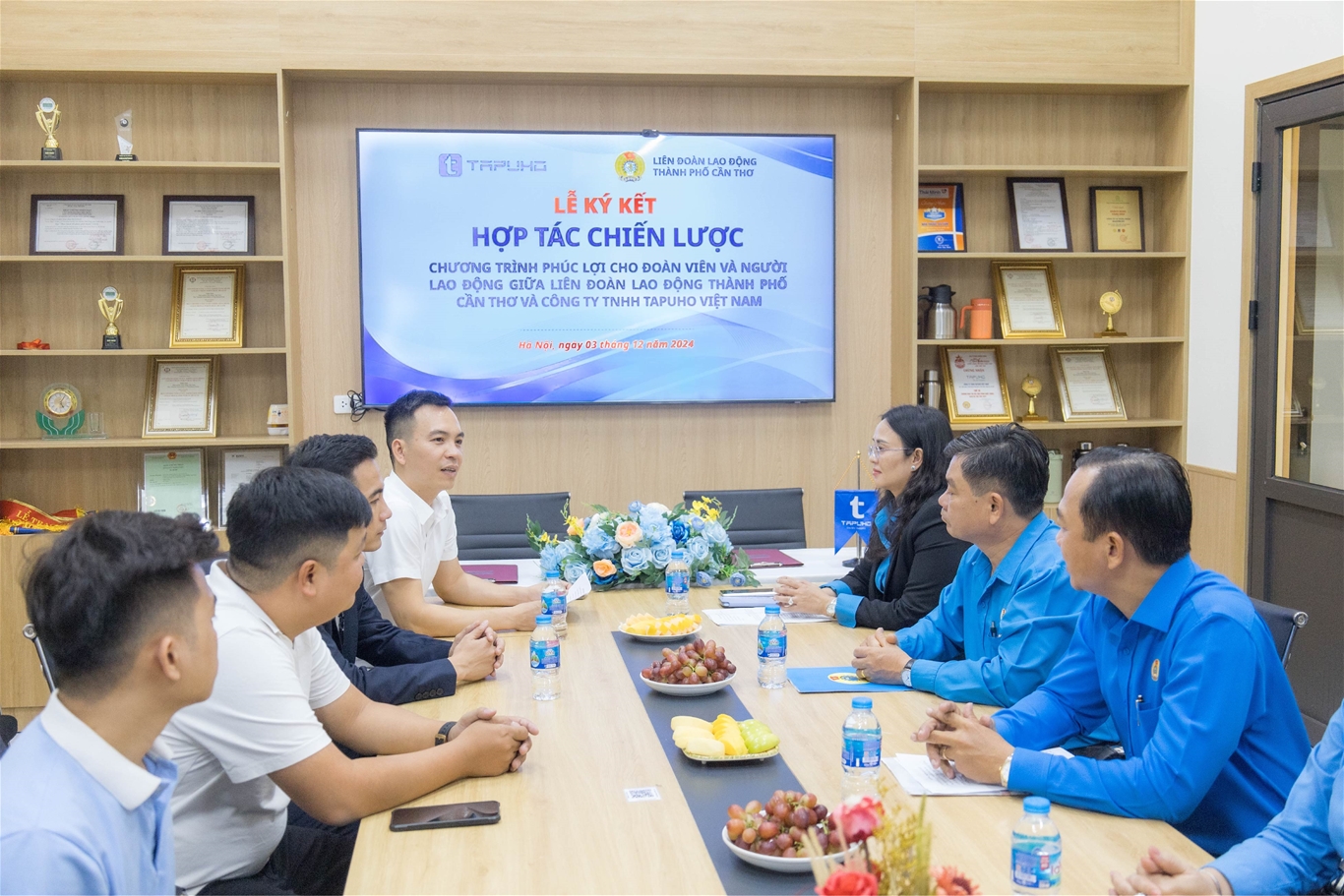 Ngày 3/12/2024, tại Hà Nội, Công ty TNHH TAPUHO Việt Nam và Liên đoàn Lao động TP. Cần Thơ đã chính thức tổ chức lễ ký kết hợp tác chiến lược về Chương trình phúc lợi cho đoàn viên và người lao động. Đây là một dấu mốc quan trọng, mở ra một giai đoạn hợp tác mới, góp phần vào sự phát triển bền vững của cộng đồng lao động và doanh nghiệp.