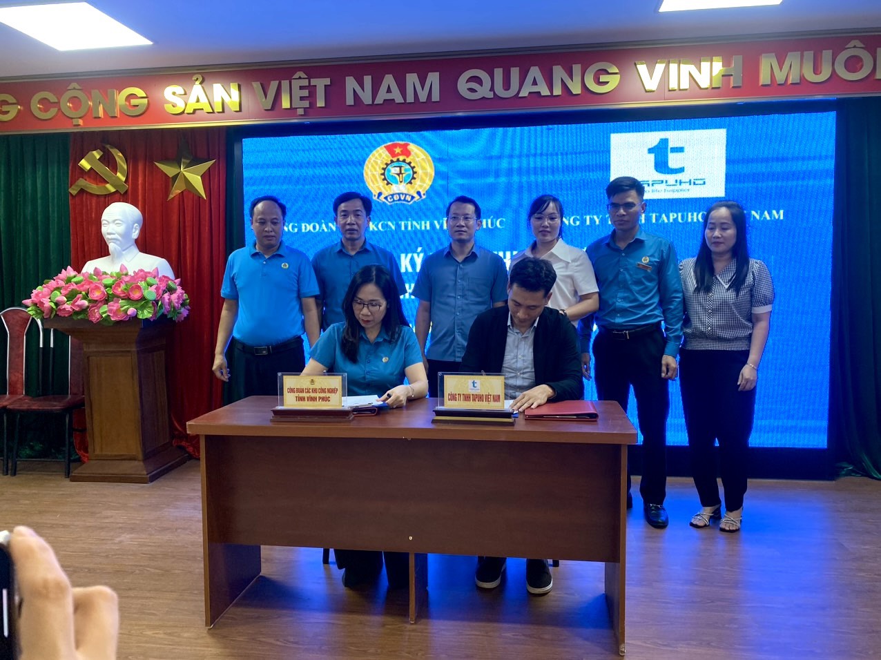 LỄ KÝ THỎA THUẬN HỢP TÁC GIỮA CÔNG ĐOÀN CÁC KHU CÔNG NGHIỆP VĨNH PHÚC VÀ CÔNG TY TNHH TAPUHO VIỆT NAM
