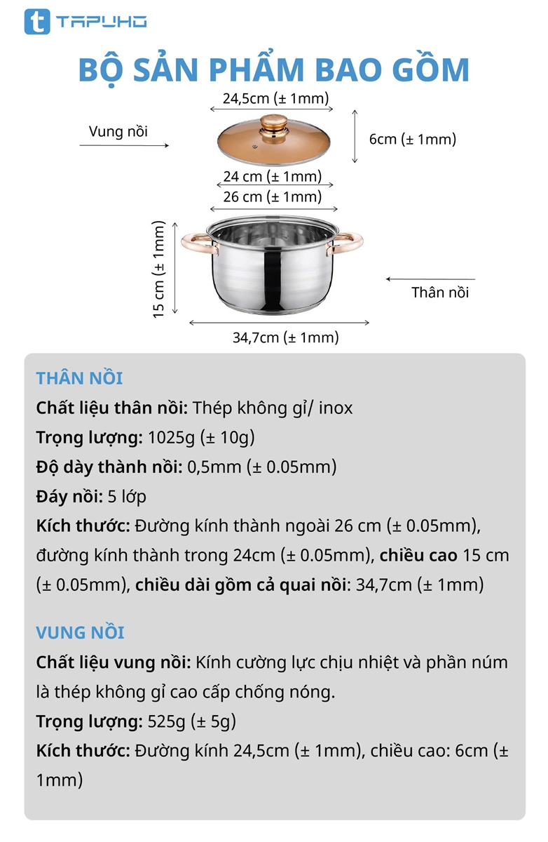 • NỒI INOX CAO CẤP TAPUHO TP2625