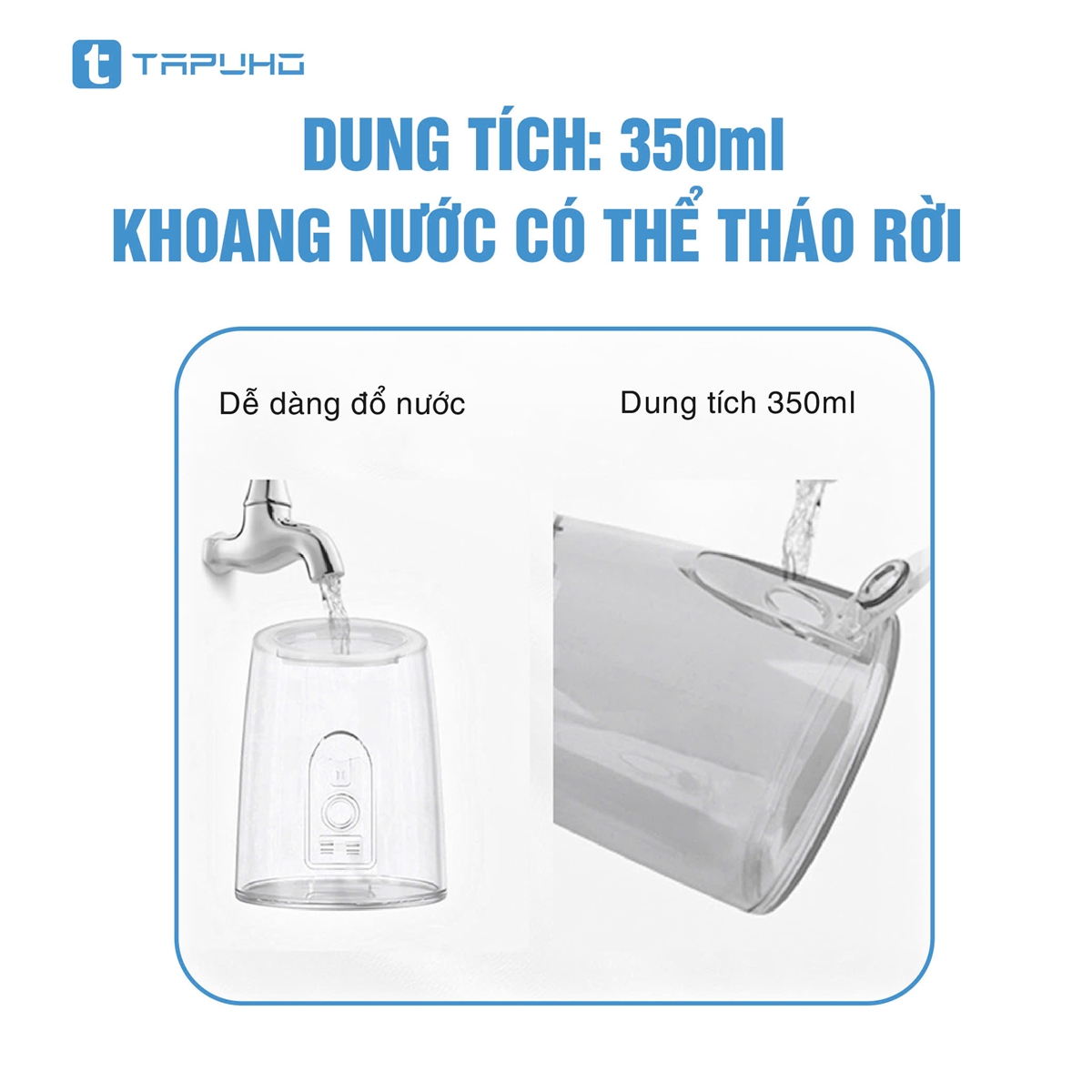 Dung tích 350ml: Đây là mức dung tích phù hợp cho mọi cá nhân sử dụng, không quá nhỏ, không quá to, có thể mang đi du lịch hay sử dụng tại nhà. Dung tích này đáp ứng nhu cầu làm sạch răng của bạn mà không cần bổ sung nước nhiều lần, rất thân thiện và tiện dụng.